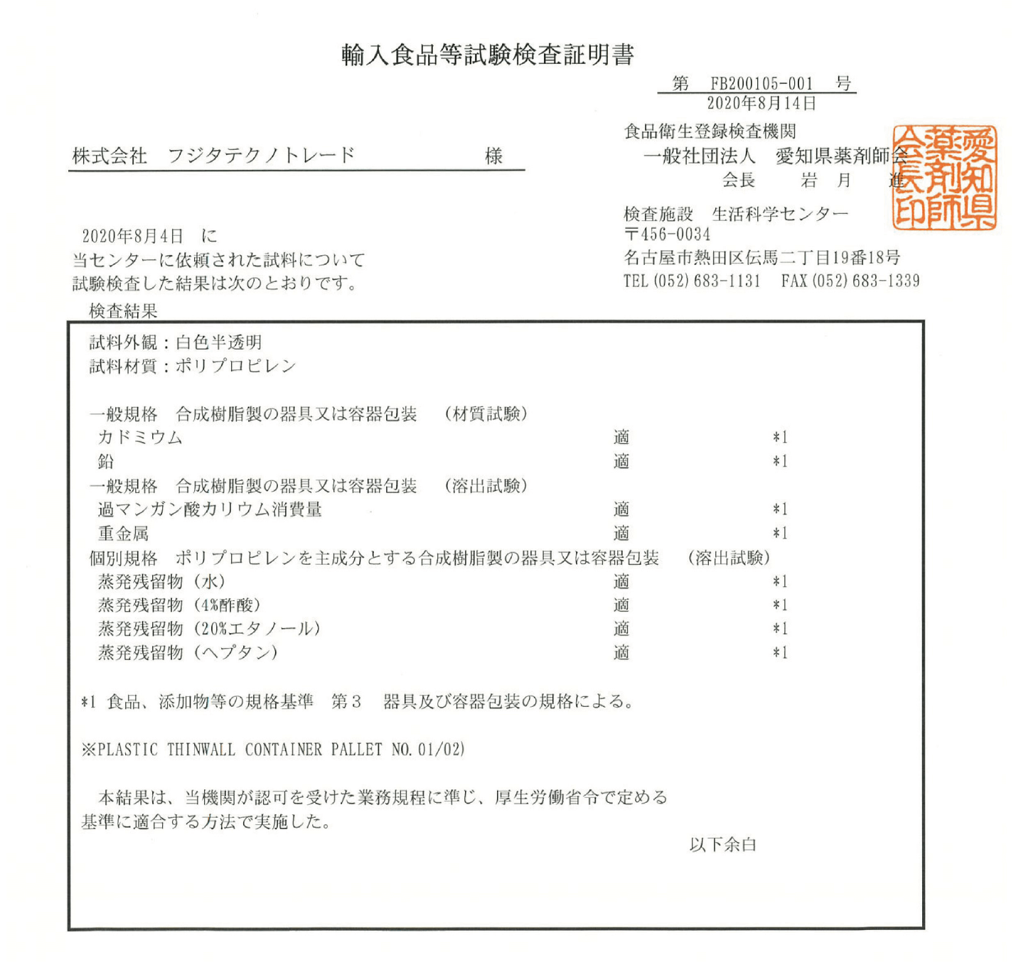 安全基準試験検査確認済み